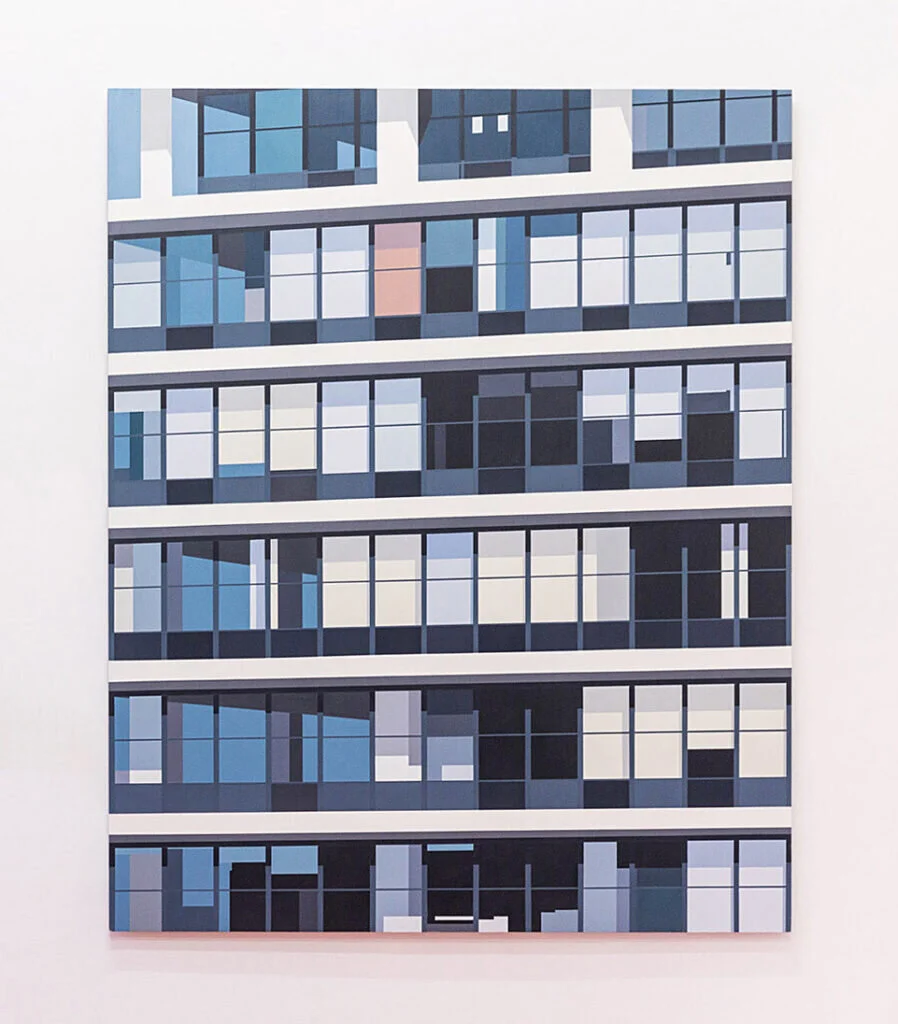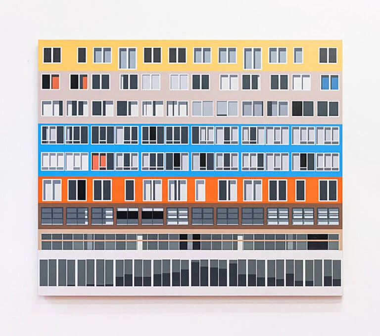 I’m attracted to a broad range of modernist architecture, although I do have a particular passion for the bold structural forms of brutalism, with its clean lines and geometric design. Although my work is primarily a depiction of a buildings’ form, I also like to imply the presence of human occupants by including the irregularities they create in the building’s façade. For example these could be curtains or objects visible through the windows.